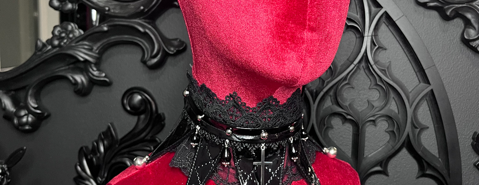 Atelier Profane will be offering reliquary commissions - bring your mementos! All of their jewelry designs will be available, as well as collars, veils, headdresses, JSKs, and a limited amount of nun-themed sets for Bernadette plushies.